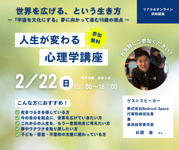 〜 世界を広げる、という生き方―『宇宙を文化にする』夢に向かって進む15歳の視点 ―